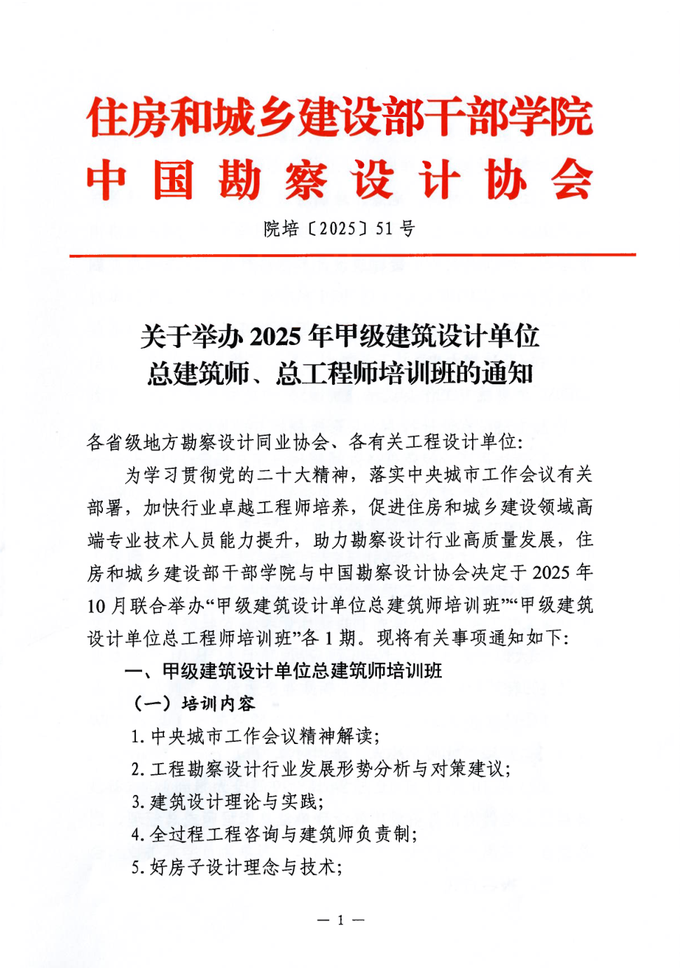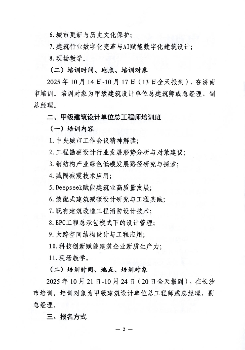 关于举办2025年甲级建筑设计单位总建筑师、总工程师培训班的通知