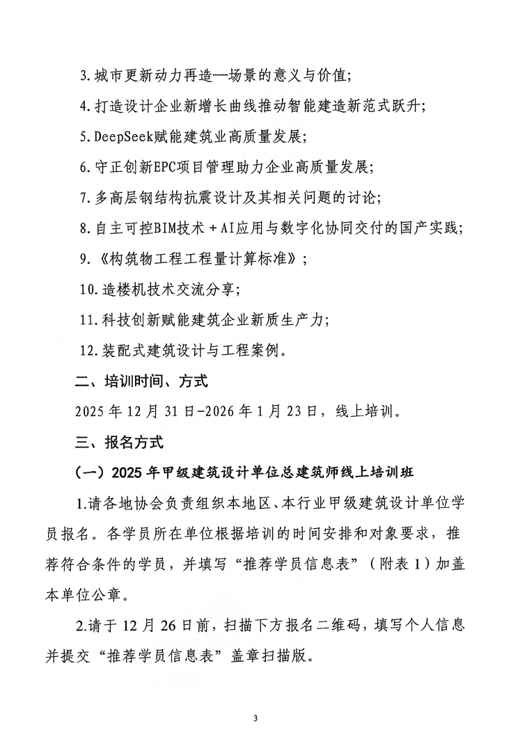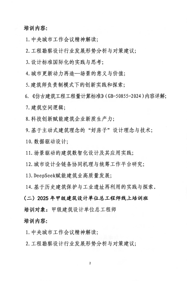关于举办2025年甲级建筑设计单位总建筑师、总工程师线上培训班的通知 院培〔2025〕71号