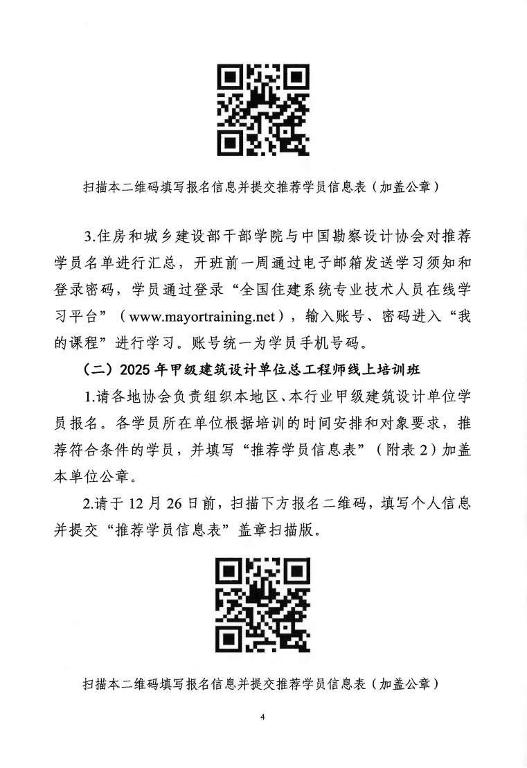 2.2025年甲级建筑设计单位总工程师线上培训班推荐学员信息表