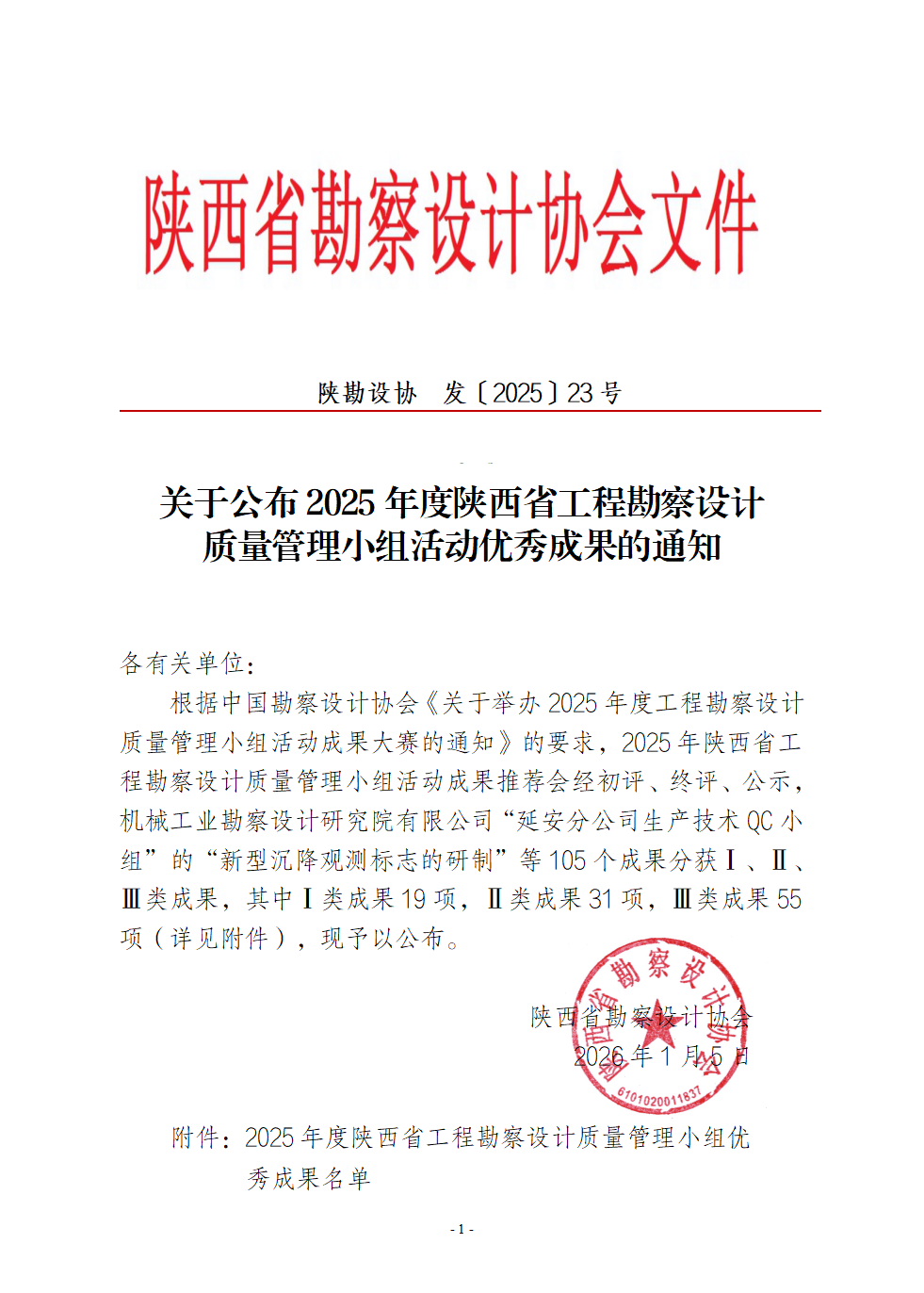 关于公布2025年度陕西省工程勘察设计质量管理小组活动优秀成果的通知 陕勘设协 发〔2025〕23号