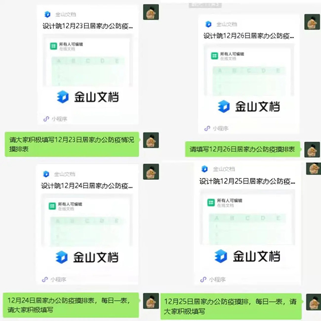 居家办公期间,设计院要求所有同仁严格遵照社区疫情防控要求,同时从两个方面进行人员疏导及防疫监督。一方面,各级管理人员分工定责,每日了解下属人员防疫及生活情况,协助解决具体困难,做好员工关怀和思想疏通;另一方面,设计院根据《居家办公防疫摸排表》每日进行人员沟通和摸底排查,及时提醒、有效监督同仁进行核酸检测及家庭防护,做好疫情防控。