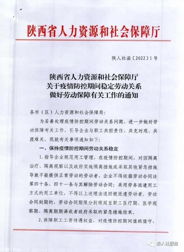 【新法速递】陕西省人社厅《关于疫情防控期间稳定劳动关系做好劳动保障有关工作的通知》
