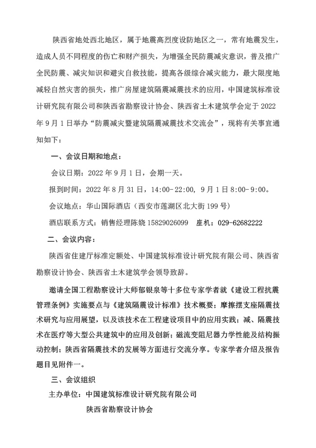 西安防震减灾暨建筑减隔震技术交流会报名回执表