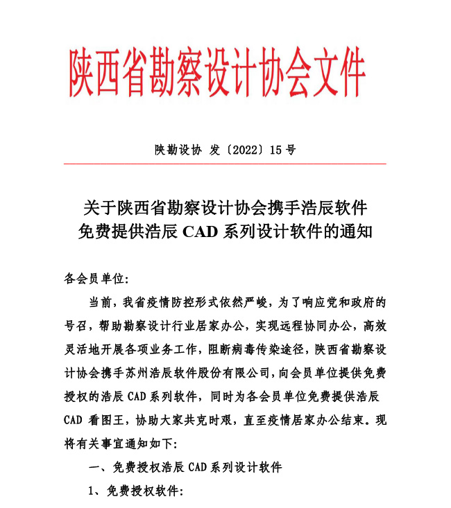 关于陕西省勘察设计协会携手浩辰软件免费提供浩辰 CAD 系列设计软件的通知
