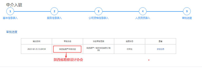 第十二步:等待后台管理(陕西省勘察设计协会)审批,审批通过入驻成功。
