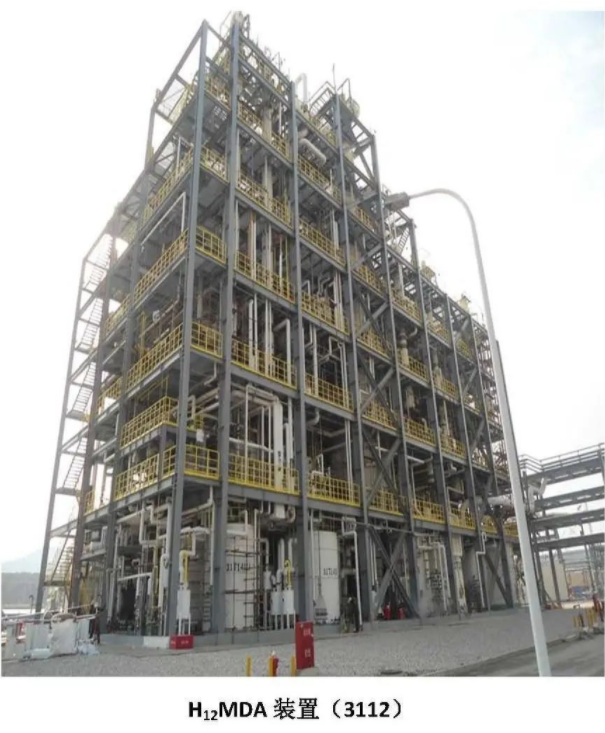 烟台万华聚氨酯股份有限公司特种胺项目利用万华化学自主开发的高效催化加氢制胺和气相光气法ADI生产工艺,建设工业化的H12MDA和H12MDI装置,生产高附加值的脂肪族二异氰酸酯(ADI)产品,H12MDI全称为4,4’-二环己基甲烷二异氰酸酯,可以用来制作耐黄变和高耐候性的高档涂料,以及物性良好的其他聚氨酯产品,由于生产工艺流程复杂,生产物料高毒和易爆,技术门槛高,难度大,多年以来一直没有国产化,在国际上因其技术的垄断性和军工用途的背景,国内无法商业引进,市场应用受到限制。本项目设计工作中,华陆公司发挥自身拥有的技术开发能力和丰富的工程设计经验,对相关工艺技术进行了大量的工程优化、系统整合和过程控制完善等工程化工作,在工程设计中助力万华实现了多项自主创新新技术的工业化成功应用。本项目的建成,不仅打破了跨国公司的技术垄断,成为自主技术创新的成功范例,同时为万华化学带来新的利润增长点,增强了企业自身的竞争实力,H12MDI产品将有力推动下游企业和相关行业的持续发展,为相关产品的国产化和高性能化提供技术支撑,保障我国国防事业及相关新材料产业的发展需求都有重要战略意义。