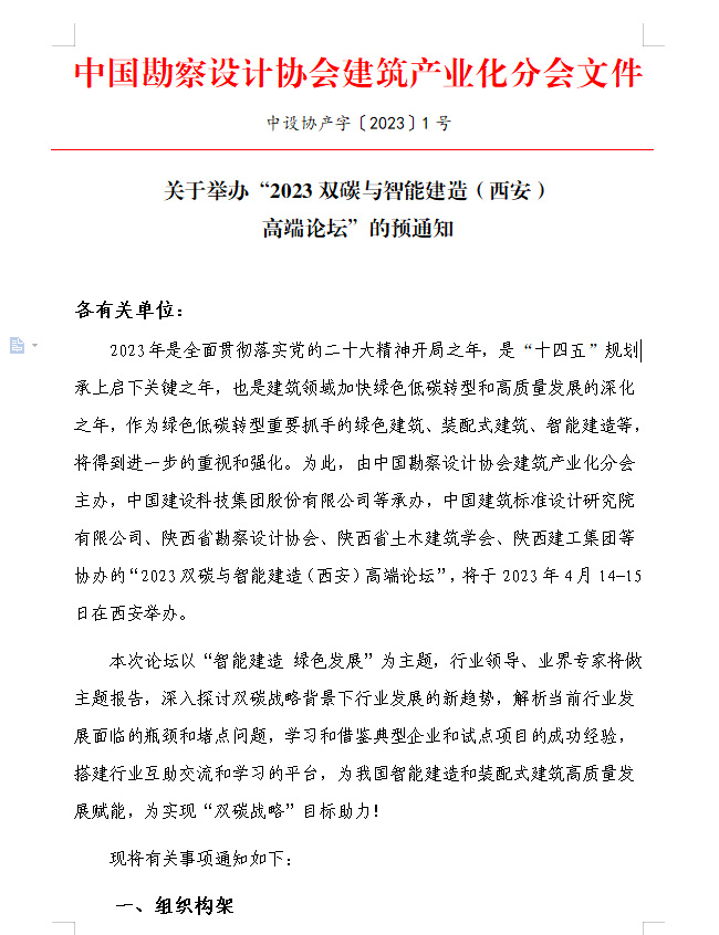 关于举办“2023双碳与智能建造(西安)高端论坛”的预通知