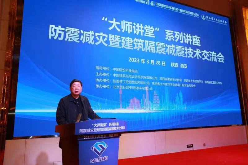 2023年3月28日,由中国建筑标准设计研究院有限公司、陕西省勘察设计协会、陕西省土木建筑学会、陕西省抗震防灾协会联合主办;陕西建工控股集团有限公司、陕西土木建筑学会地震工程专业委员会协办;北京国标建安新材料有限公司承办的“大师讲堂”系列讲座·防震减灾暨建筑隔震减震技术交流会在西安市召开。来自陕西、甘肃、新疆、宁夏、内蒙古、河南等省市从事建筑隔震减震技术人员共计400余人齐聚一堂,共同交流建筑隔震减震技术。
