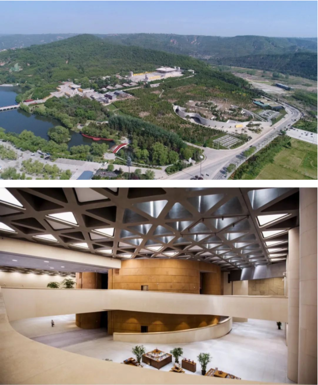 建筑主体藏于地下,结构顶板上设2米以上的覆土,密植成林,以山环水绕、满目苍翠来强化黄帝陵的圣地感,是重要的爱国主义教育平台。