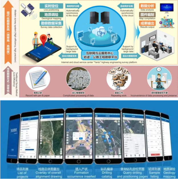 1. 本系统基于“互联网+”思路,由岩途公路工程地质外业数据采集子系统、岩途公路工程地质勘察专业化数据处理子系统及岩途公路工程地质勘察协同工作平台子系统构建了“岩途公路工程地质勘察协同工作系统”。