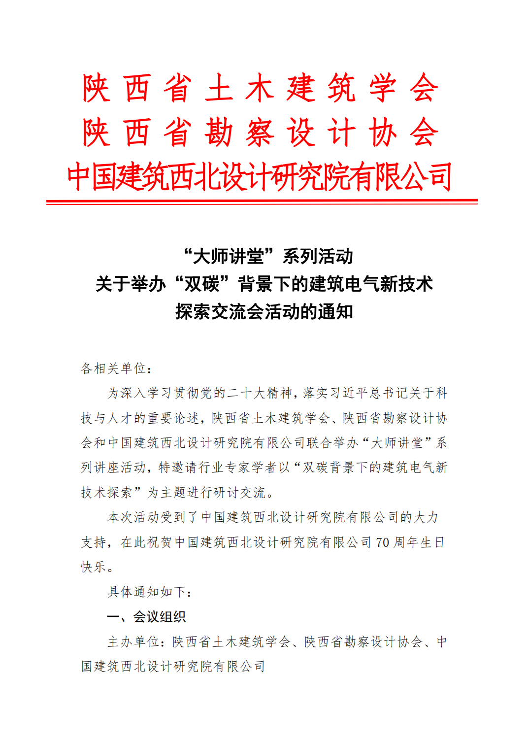“大师讲堂”系列活动关于举办“双碳”背景下的建筑电气新技术 探索交流会活动的通知