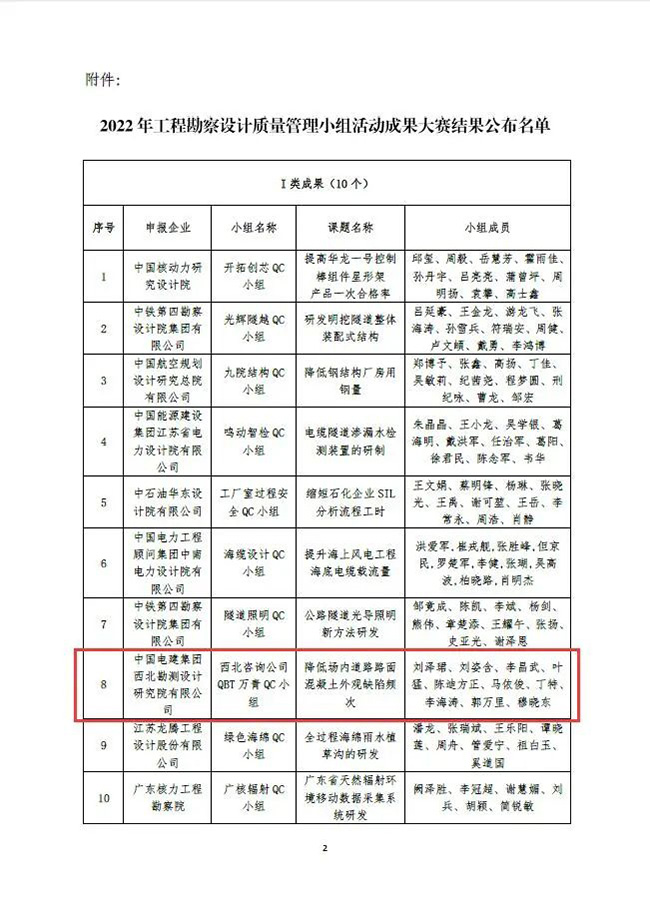 近日,中国勘察设计协会发布《关于公布2022年度工程勘察设计质量管理小组活动成果大赛结果的通知》(中设协字〔2023〕24号)的文件,其中Ⅰ类成果10个,Ⅱ类成果30个,Ⅲ类成果60个。经我省推荐获奖项目5个,其中Ⅰ类成果1个,Ⅱ类成果2个,Ⅲ类成果2个。