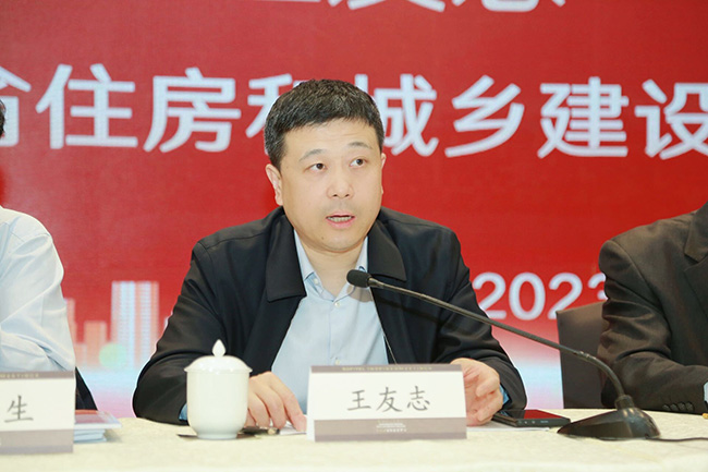 王友志副厅长首先传达了省住建厅张晓峰厅长对协会的批示。张厅长在批示中指出:陕西省勘察设计协会多年来围绕我省经济社会发展大局和全省住房和城乡建设中心工作,努力服务政府、会员,在勘察设计行业新政策的宣贯,新标准的培训,新技术的推广以及人才队伍的培养方面,充分发挥了协会的服务职能,为我省勘察设计行业转型升级,改革创新,做强做优,高质量发展做了卓有成效的工作。特别是在我省新型城镇化建设和美丽乡村建设中,发挥设计先导引领作用,组织广大会员单位设计了系列精品图册在全省推广实施,取得了显著成效。希望协会继续发挥好政府和企业的桥梁纽带作用,以党的二十大精神和习近平新时代中国特色社会主义思想为指导,不忘初心,牢记使命,践行宗旨,转变作风,不断创新,优质服务。认真贯彻“适用、经济、绿色、美观”的新时期建筑方针,提升设计水平,为社会提供高品质的建筑作品,为我省新型城镇化高质量发展和乡村振兴作出新的更大的贡献。