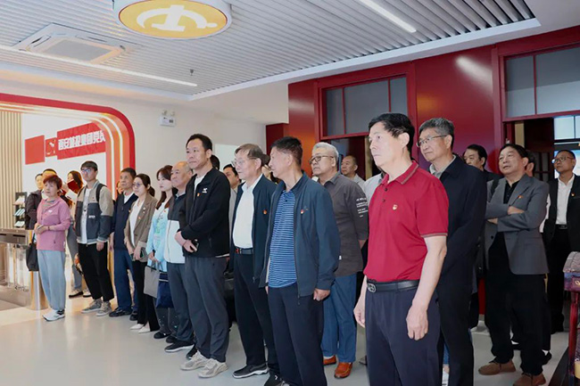 全体同志在党员政治生活馆,参观中国共产党百年党史教育长廊和党性教育室。红色长廊把握百年党史发展中的重大关键节点,从新民主主义革命时期、社会主义革命和建设时期、改革开放和社会主义现代化建设时期、中国特色社会主义新时代四个时期生动讲述中国共产党走过的峥嵘岁月,着重凸显中国共产党人的精神谱系。