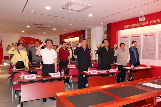 在党性教育室所有同志面向革命先烈纪念墙鞠躬缅怀。“我志愿加入中国共产党,拥护党的纲领,遵守党的章程,履行党员义务,执行党的决定,严守党的纪律,保守党的秘密,对党忠诚,积极工作,为共产主义奋斗终身,随时准备为党和人民牺牲一切,永不叛党。