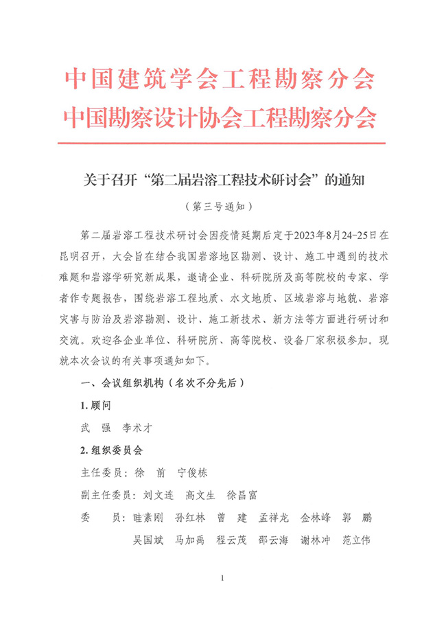 关于召开“第二届岩溶工程技术研讨会”的通知