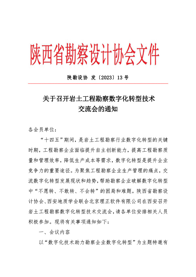 陕勘设协发〔2023〕13号 关于召开岩土工程勘察数字化转型技术交流会的通知