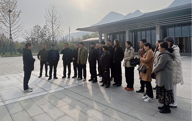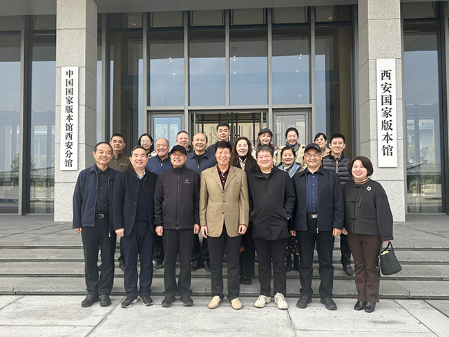 拾级而上,讲解员从国家版本馆“一总三分”的总体布局以及西安分馆的规划理念、建设背景、建筑特点、馆藏典籍等方面进行深入介绍,大家先后参观了该版本馆长90米、高20米的四层巨型通顶书墙以及《赓续文脉 踔厉前行——中华文化经典版本展(西部篇)》。参观过程中,大家通过听讲解、观视频、看实物,细致了解以西部为主的中华经典版本故事,现场感受丝路文化的发展与传承,深刻体悟我们党把马克思主义基本原理同中国具体实际相结合、同中华优秀传统文化相结合的奋斗历程和丰硕成果,不约而同为博大精深的中华文化所陶醉,为新时代取得的伟大成就变革所鼓舞。