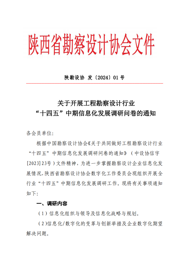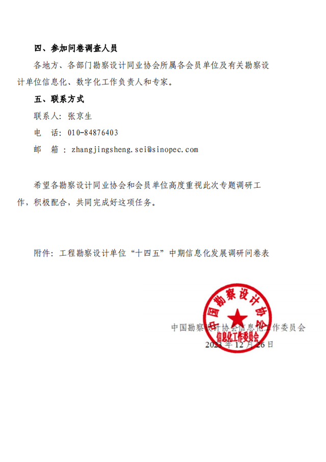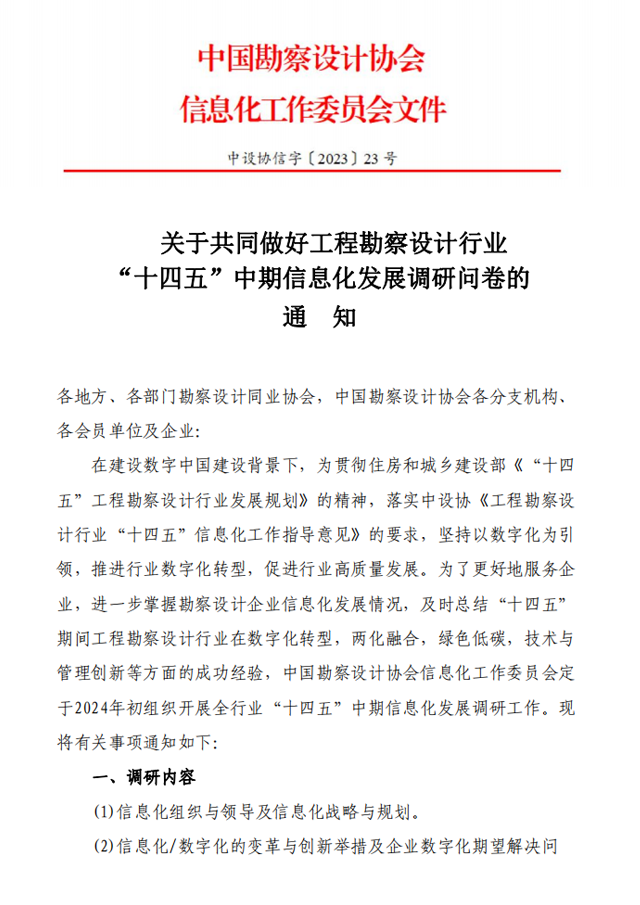 关于开展工程勘察设计行业 “十四五”中期信息化发展调研问卷的通知