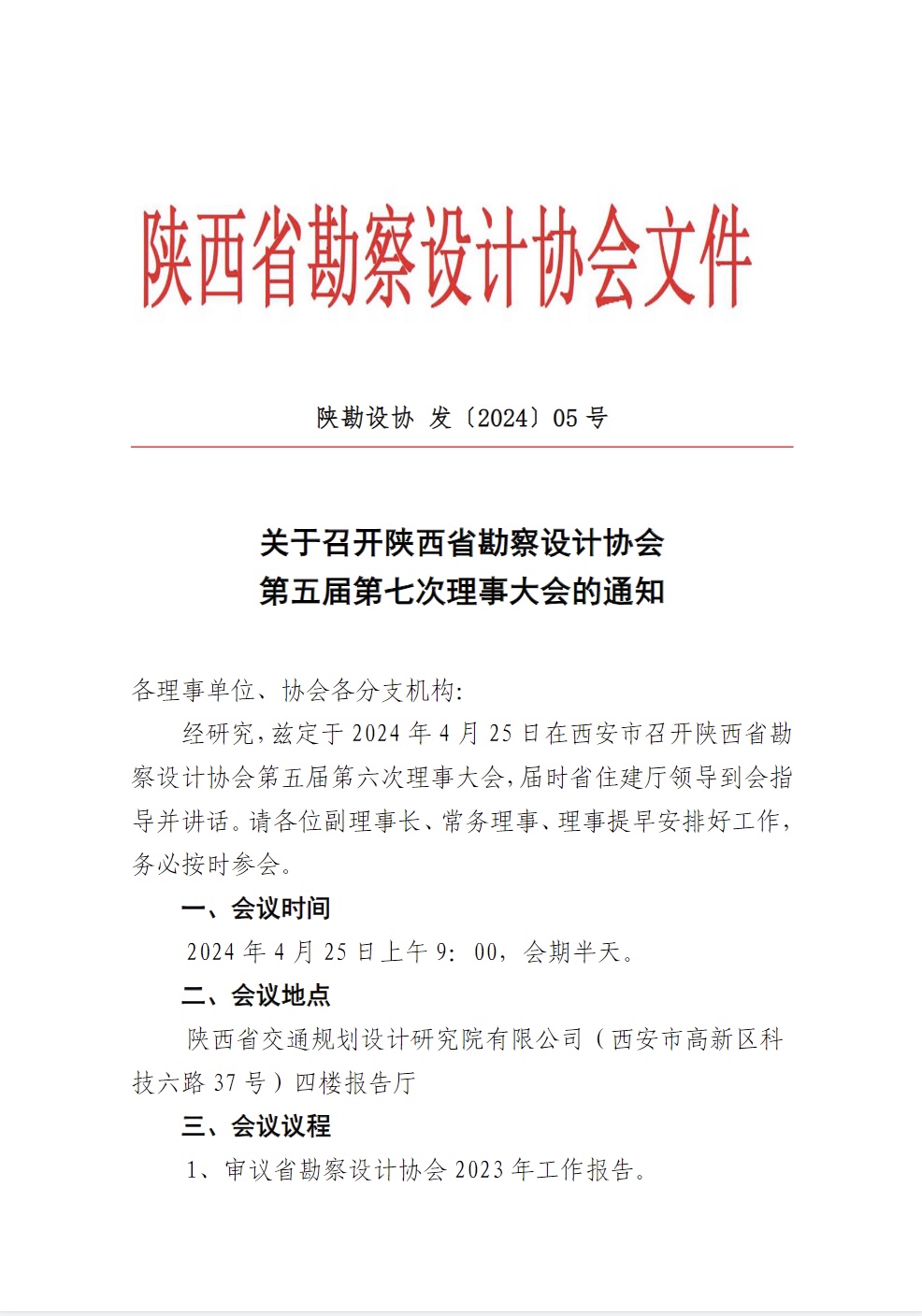 关于召开陕西省勘察设计协会第五届第七次理事大会的通知