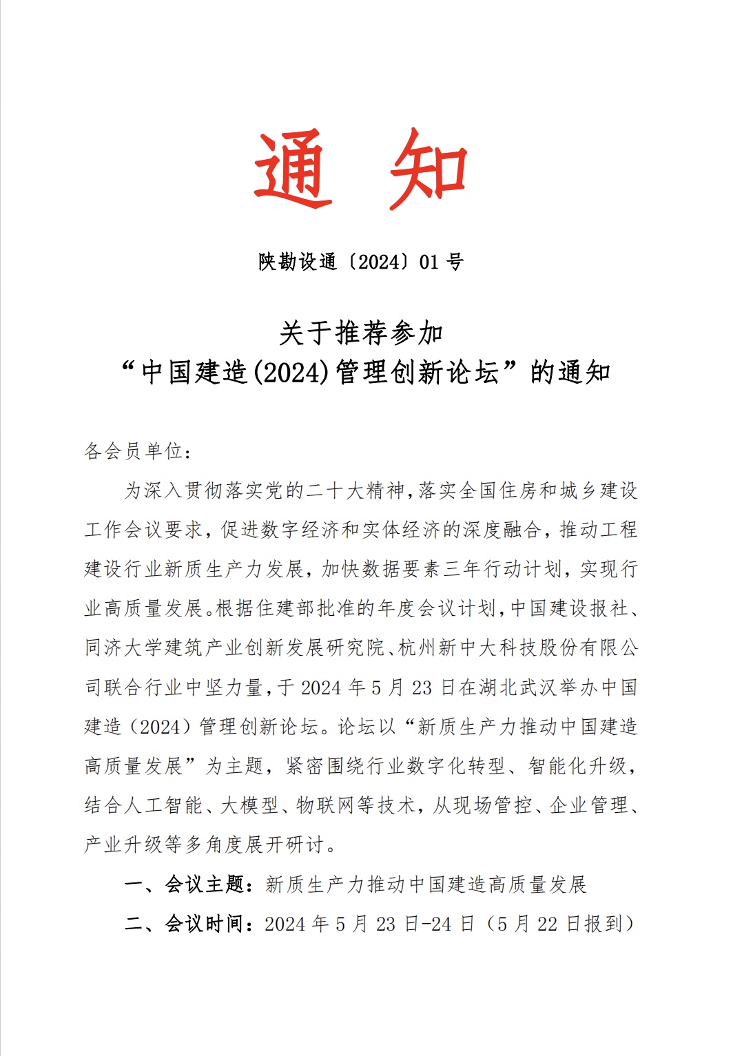 关于推荐参加“中国建造(2024)管理创新论坛”的通知