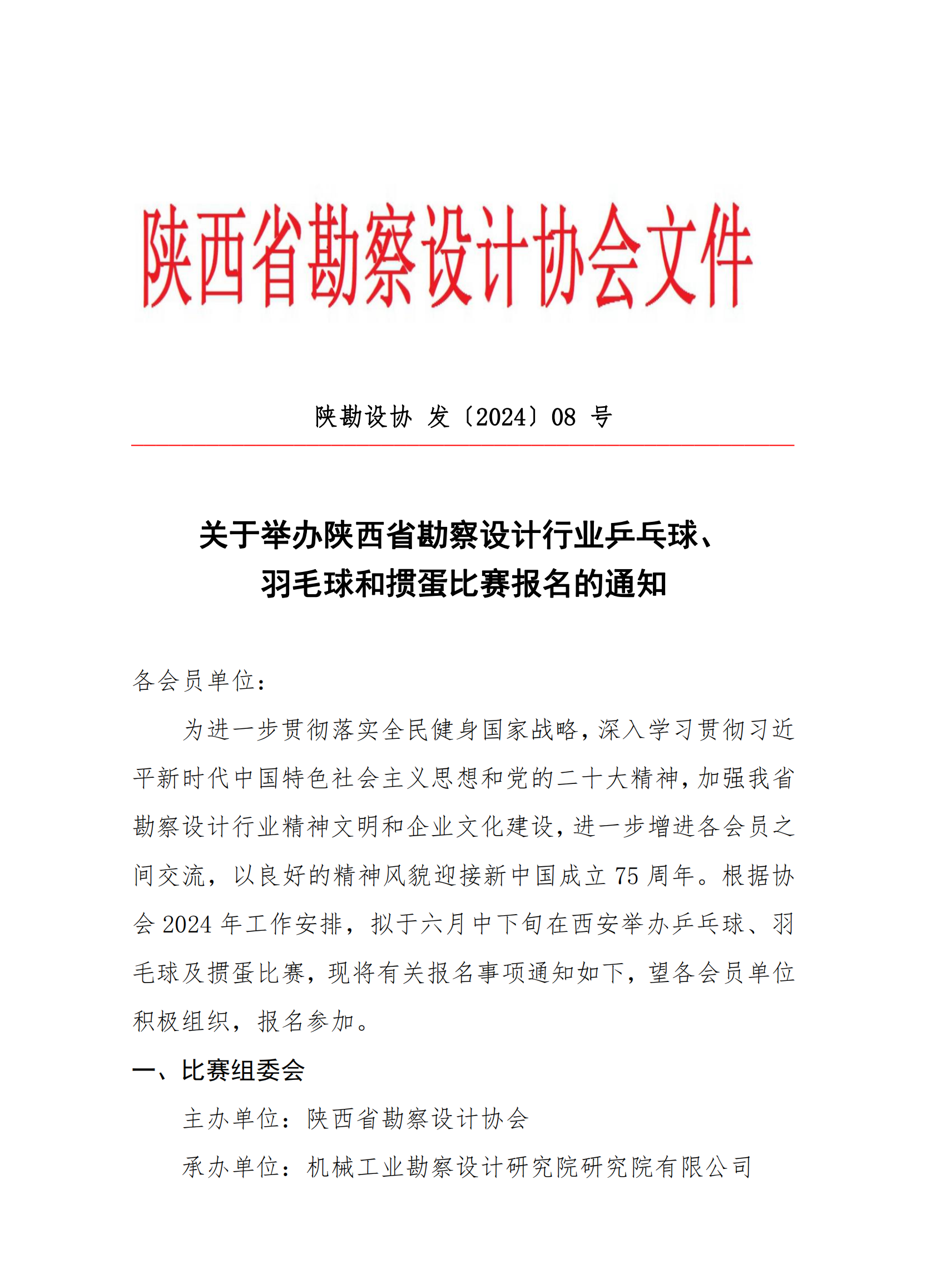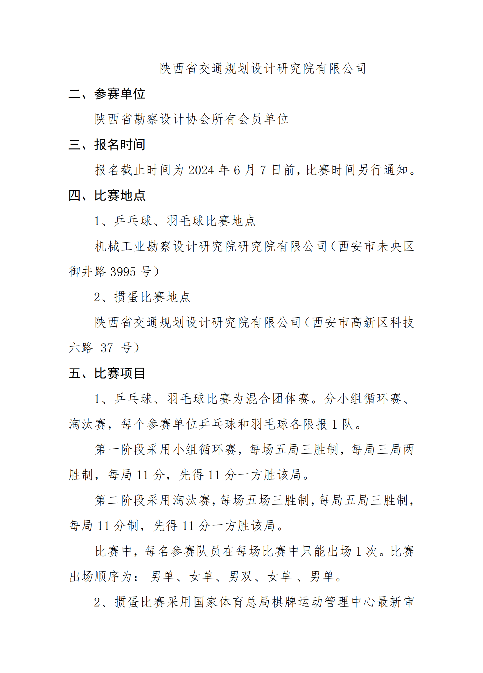 关于举办陕西省勘察设计行业乒乓球、羽毛球和掼蛋比赛报名的通知