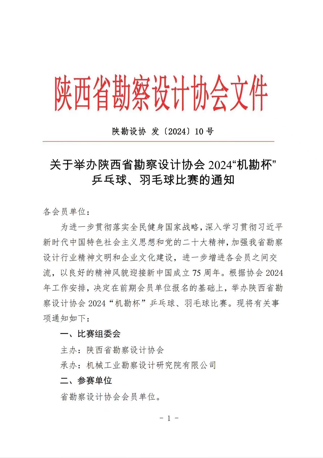 关于举办陕西省勘察设计协会 2024“机勘杯”乒乓球、羽毛球比赛的通知