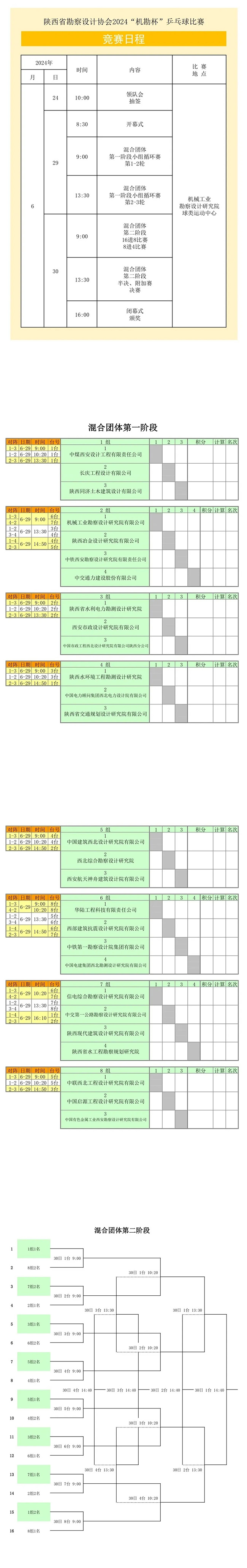 陕西省勘察设计协会2024“机勘杯”乒乓球比赛日程公布