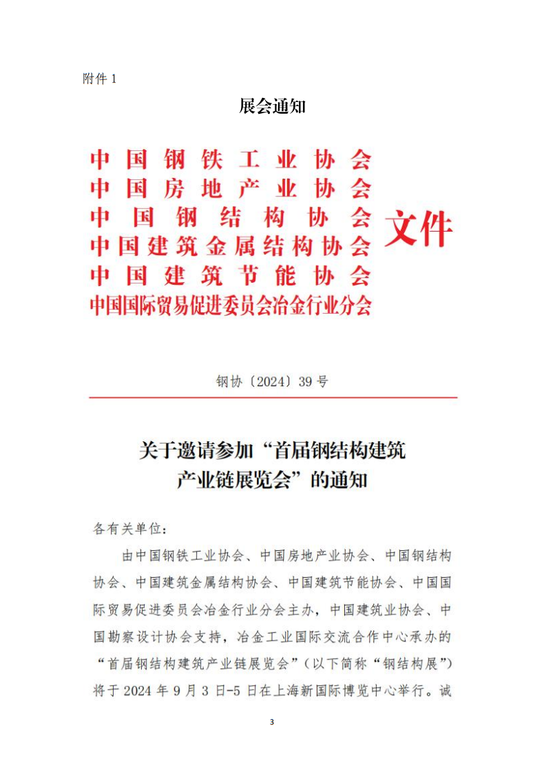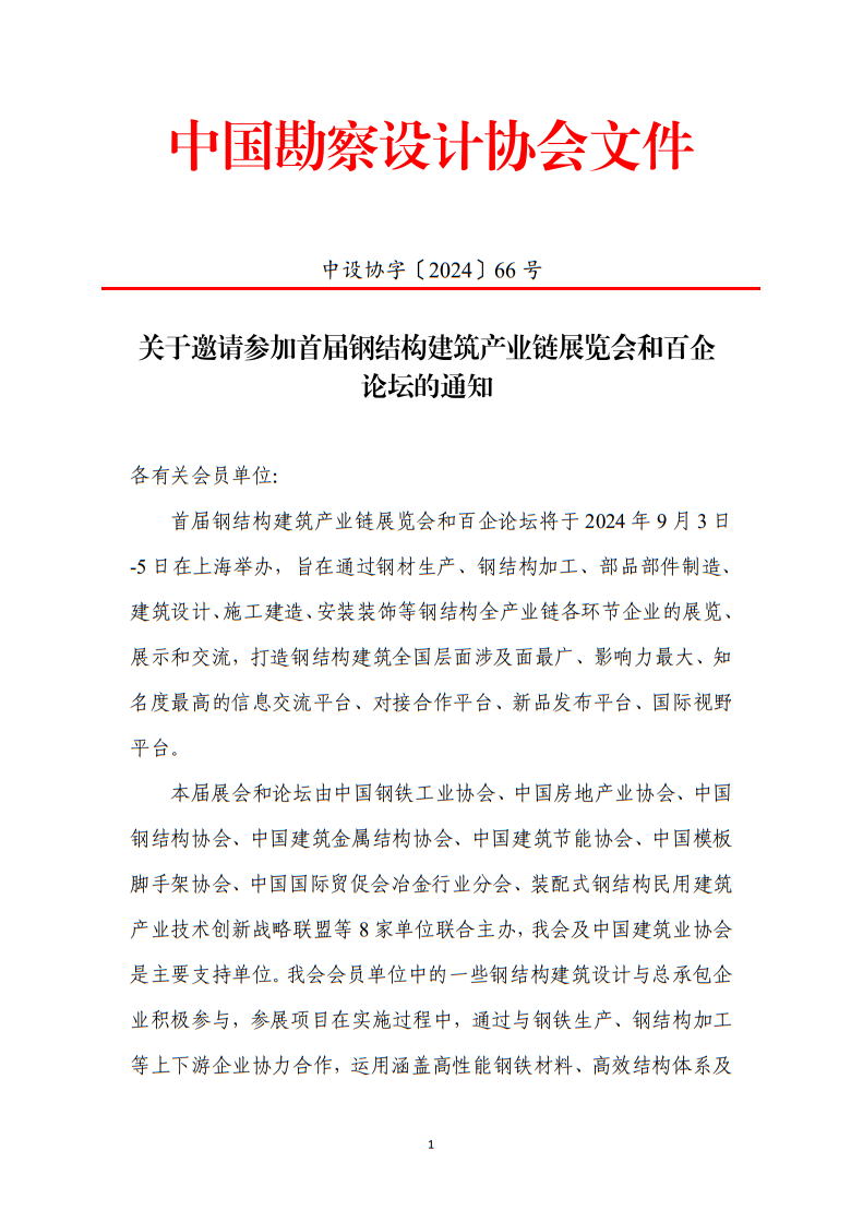 中国勘察设计协会文件关于邀请参加首届钢结构建筑产业链展览会和百企论坛的通知