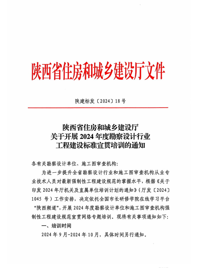 陕西省住房和城乡建设厅关于开展2024年度勘察设计行业工程建设标准宣贯培训的通知