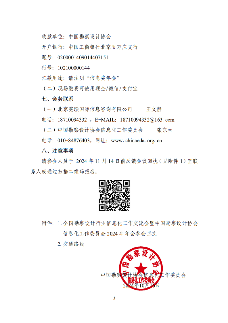 附件:中设协信字〔2024〕11号关于召开2024年全国勘察设计行业信息化工作交流会暨中国勘察设计协会信息化工作委员会2024年年会的通知