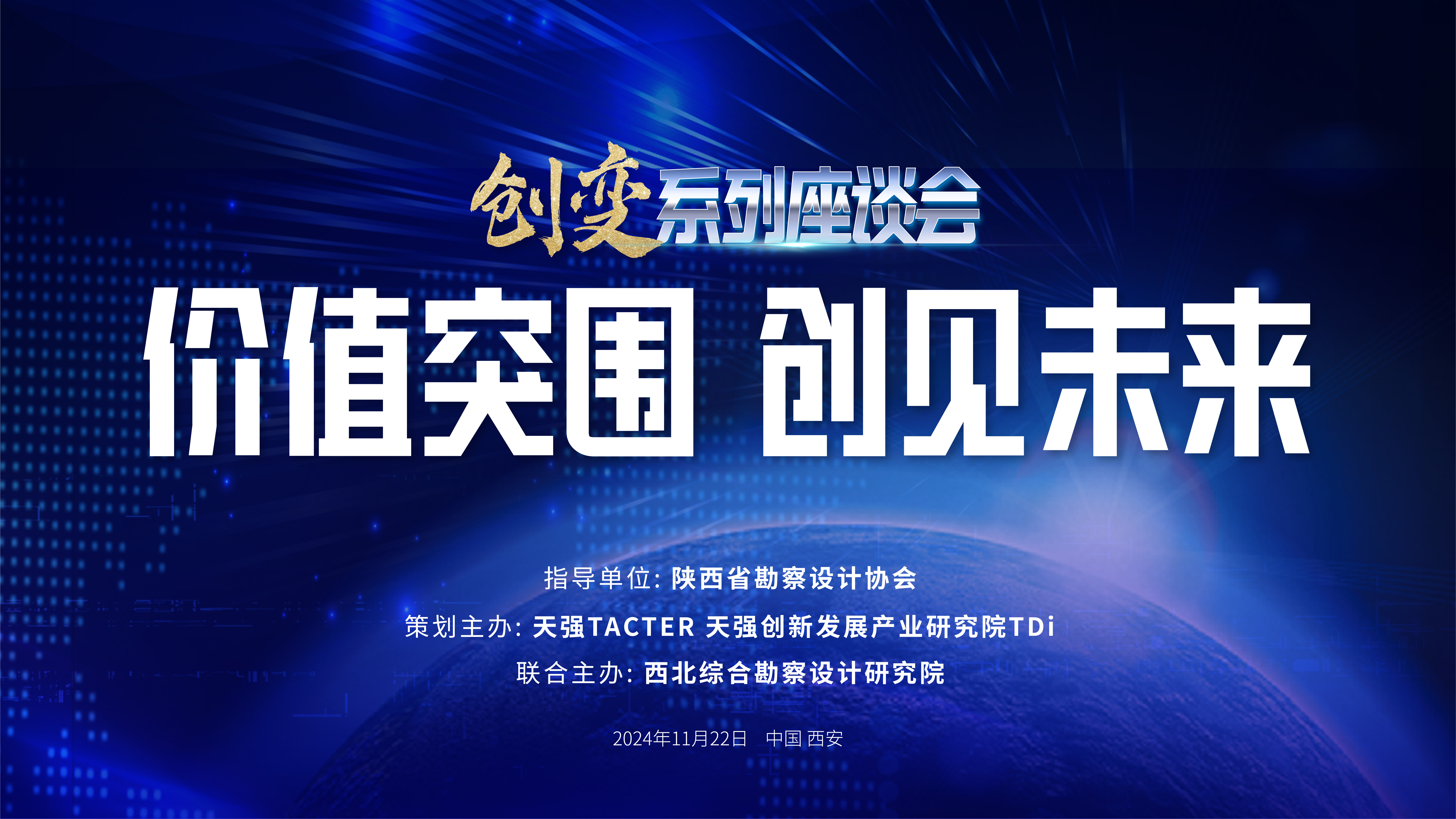 11月22日,陕西省勘察设计协会和西北综合勘察设计研究院联合天强TACTER、天强创新发展产业研究院TDI于止园饭店共同举办工程设计企业「创变」系列座谈会。