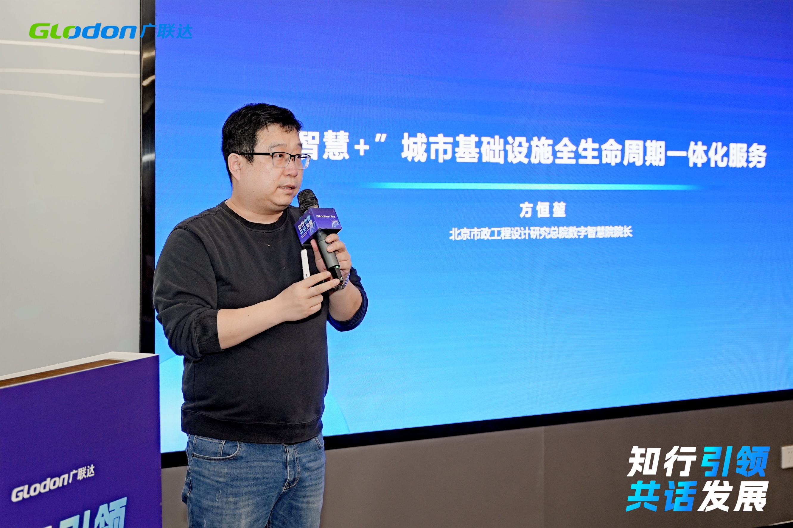 分享环节,首先邀请北京市政工程设计研究总院数字智慧院院长方恒堃以《“智慧+”城市基础设施全生命周期一体化服务》为主题,围绕数字化转型实践,结合北京市政工程设计研究院的转型实例,详细介绍企业数字化发展的全过程,深入讲解数字应用在实践过程中的经验要点。通过丰富的案例与实例演示,为企业数字化转型提供新的思路。