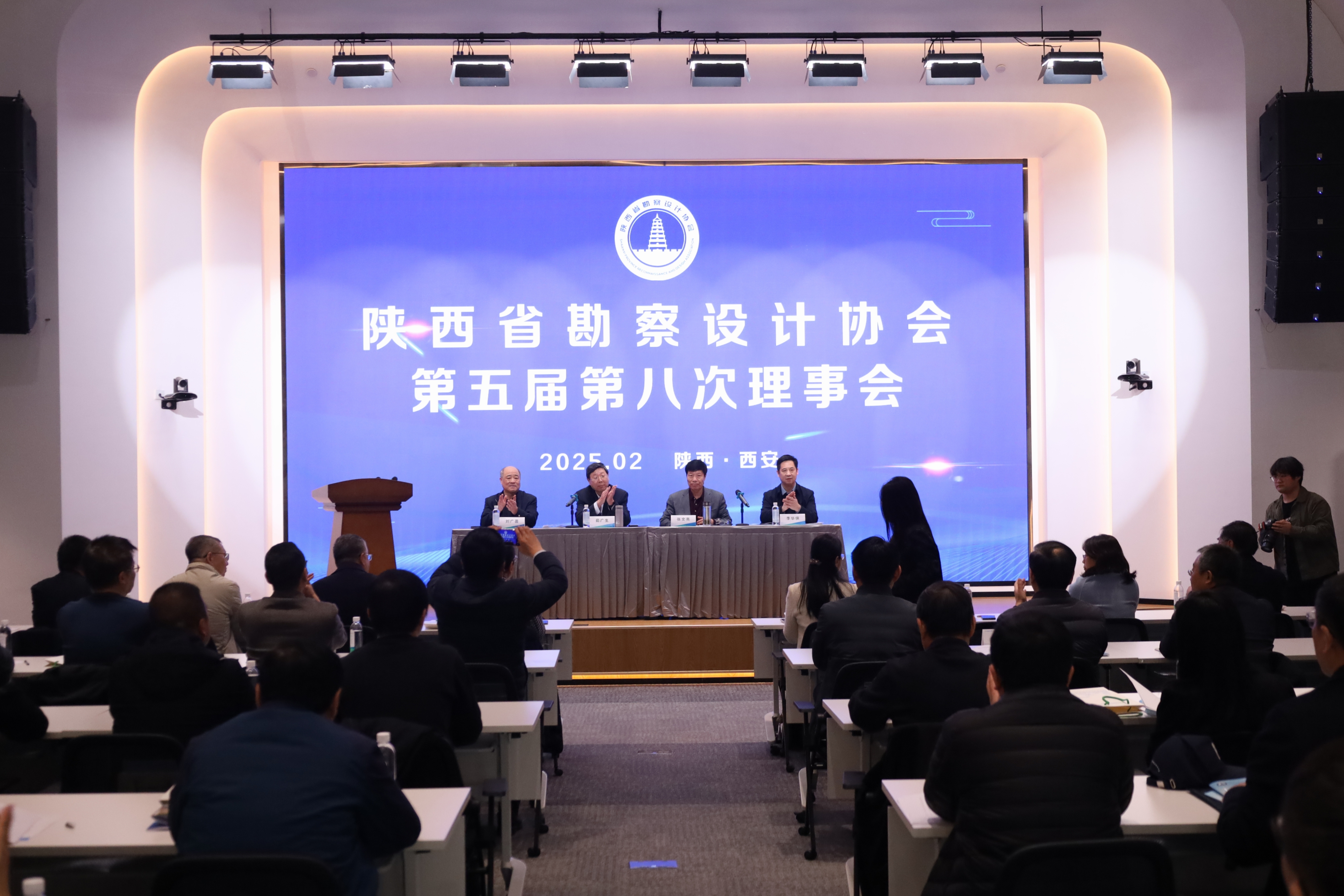 最后,茹广生书记在总结中指出2025年作为“十四五”规划收官之年,陕西省勘察设计企业要以全面深化改革为契机,深入贯彻习近平新时代中国特色社会主义思想和党的二十大精神,紧扣“创新、协调、绿色、开放、共享”新发展理念及“适用、经济、绿色、美观”新时期建筑方针,构建新发展格局。围绕省住房城乡建设工作会议精神,坚持党建引领,聚焦行业创新转型、绿色低碳发展,强化桥梁纽带作用,推动高素质人才培养,数字化转型,诚信体系建设及新技术应用。同时,协会将深化为会员服务理念,通过政策宣贯、技术交流及文化活动助力企业破局发展。优化内部管理机制,推进党支部标准化建设,争创“5A级社会组织”,奋力谱写中国式现代化建设的陕西新篇章。