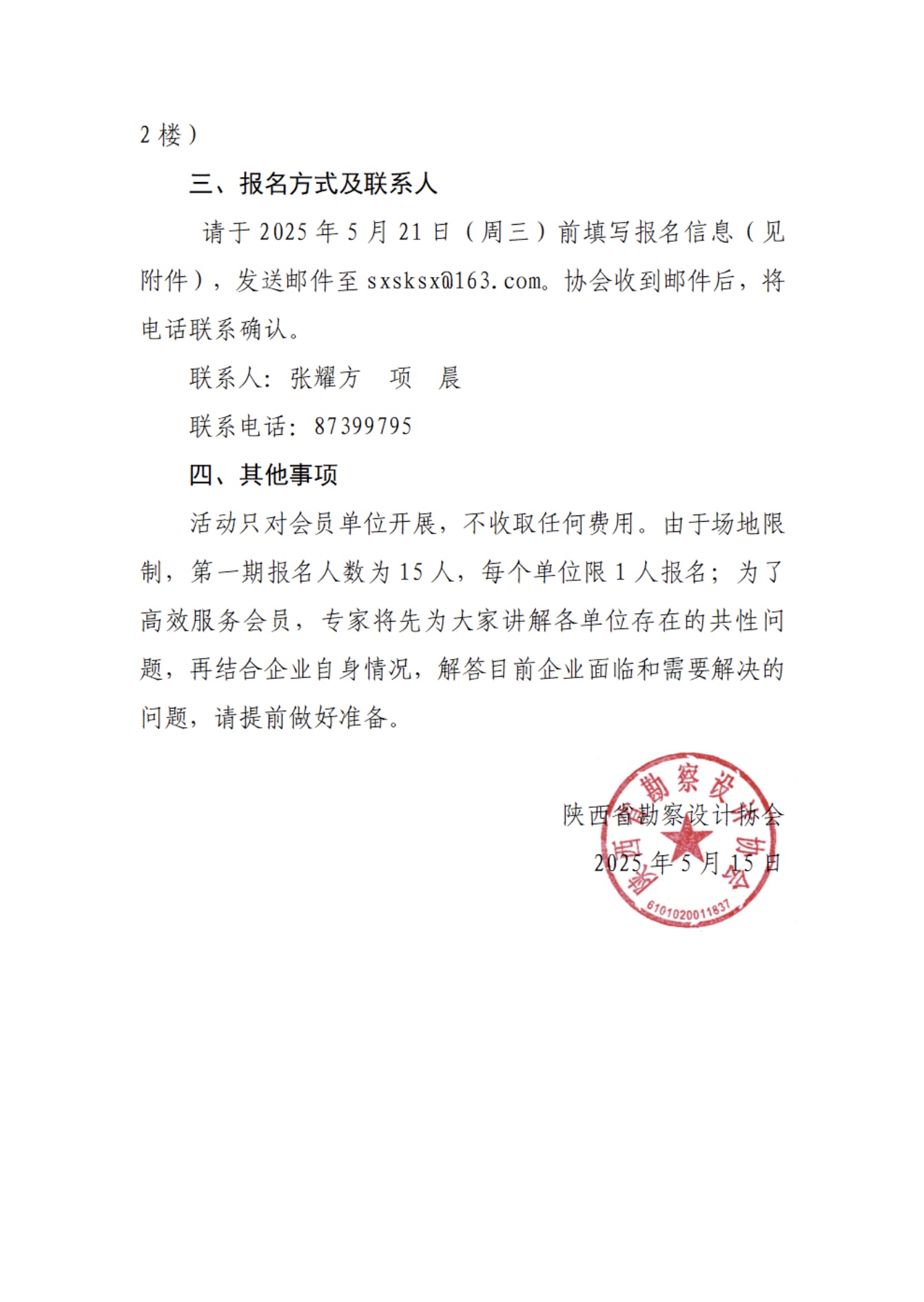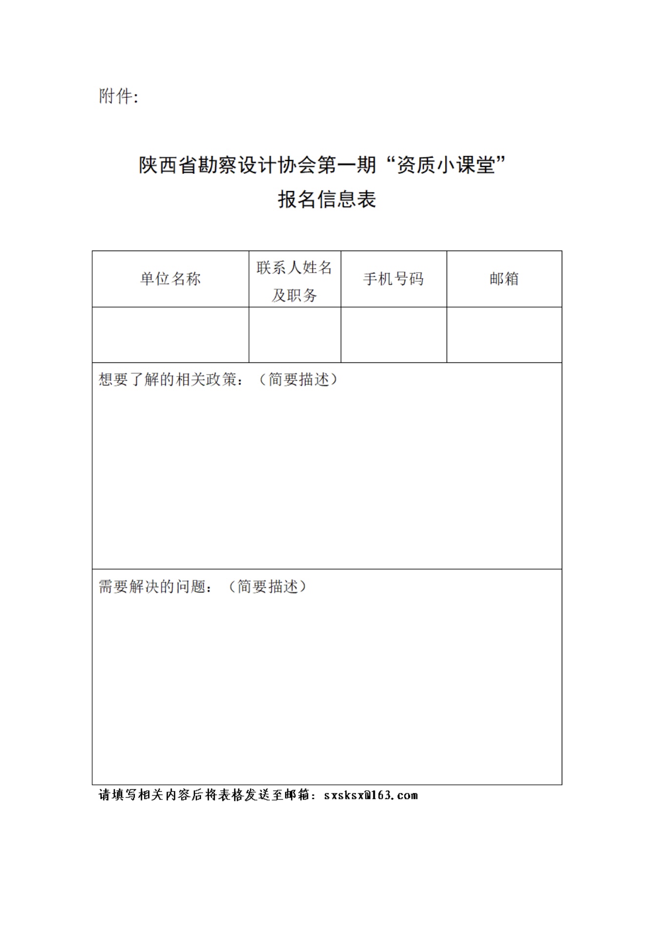 附件:陕西省勘察设计协会第一期“资质小课堂”报名信息表