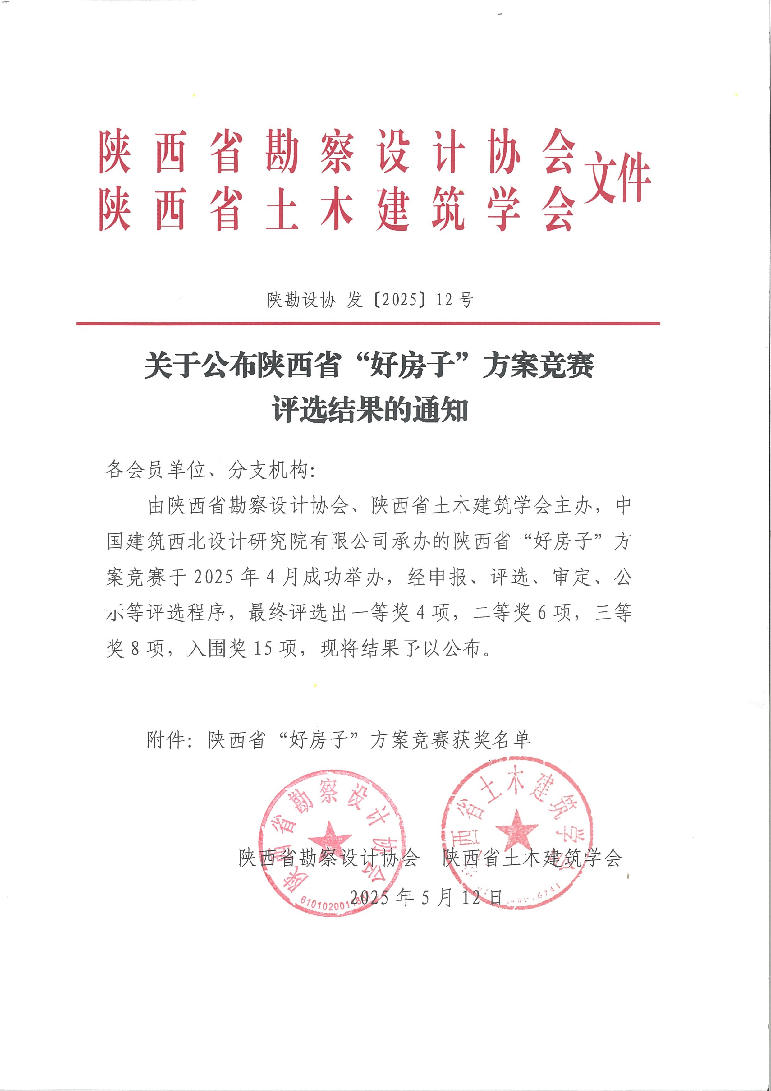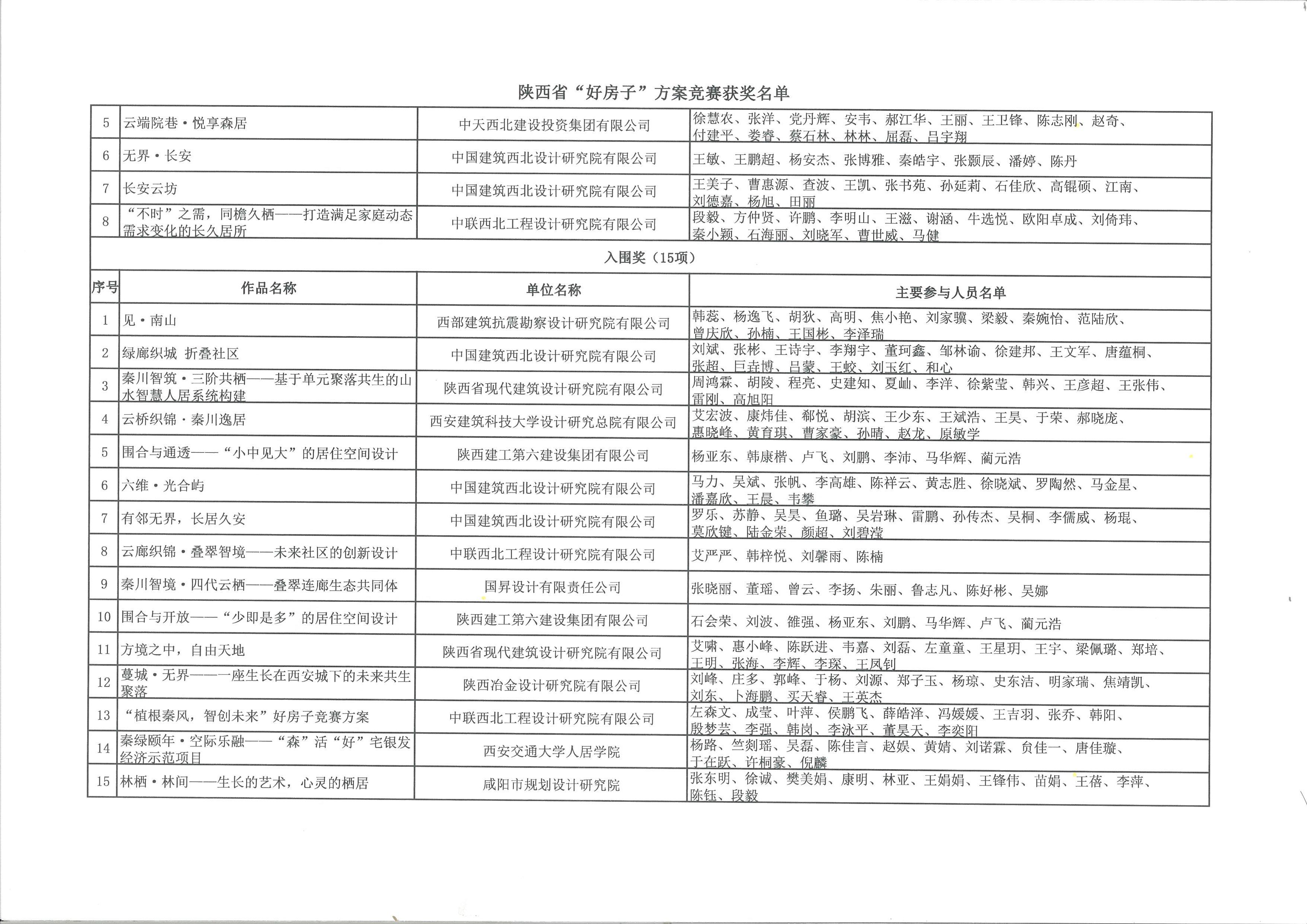 关于公布陕西省“好房子”方案竞赛评选结果的通知