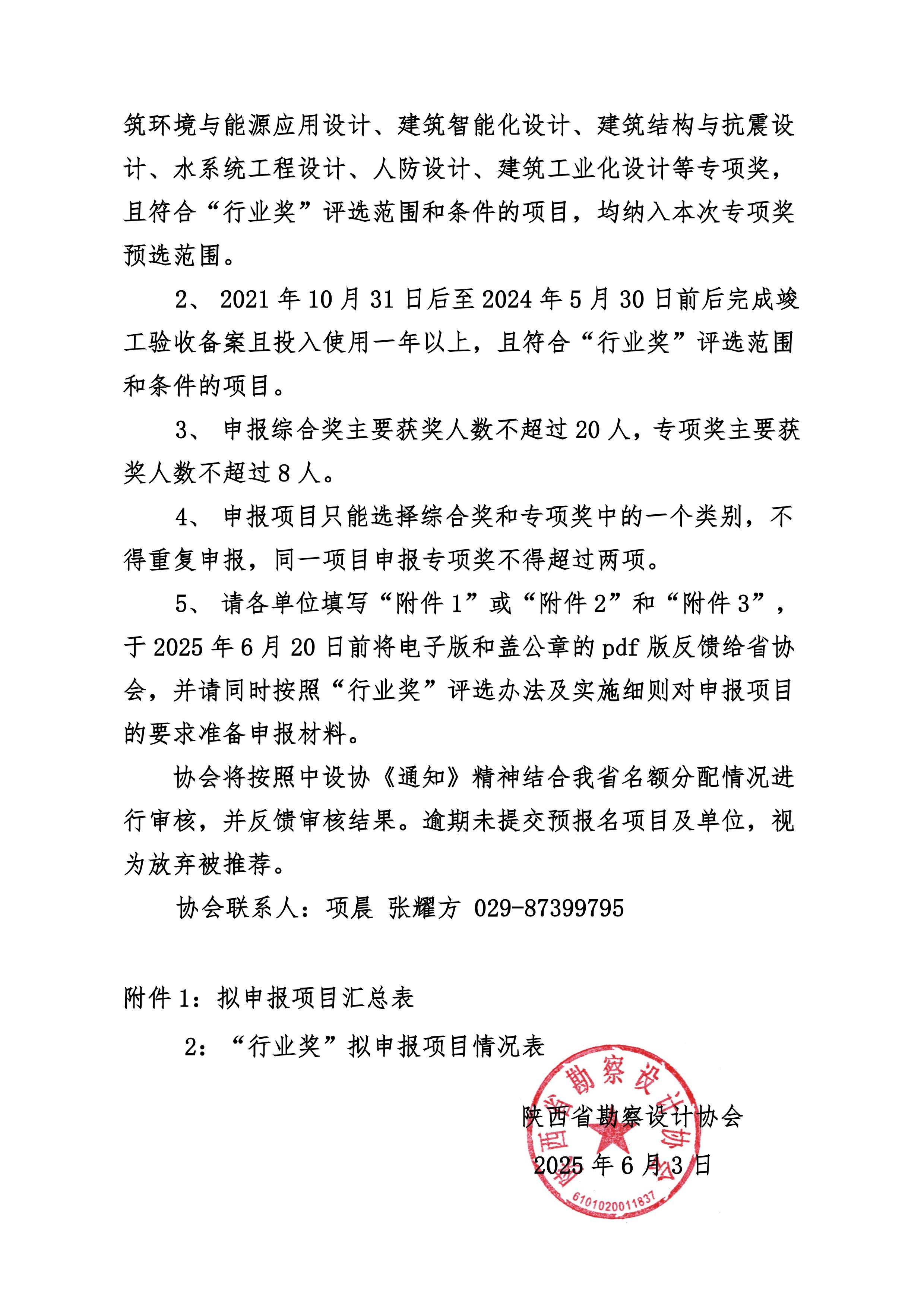 陕勘设协 发〔2025〕14 号 关于 2025 年申报中国勘察设计协会全国优秀工程勘察设计奖预报名的通知