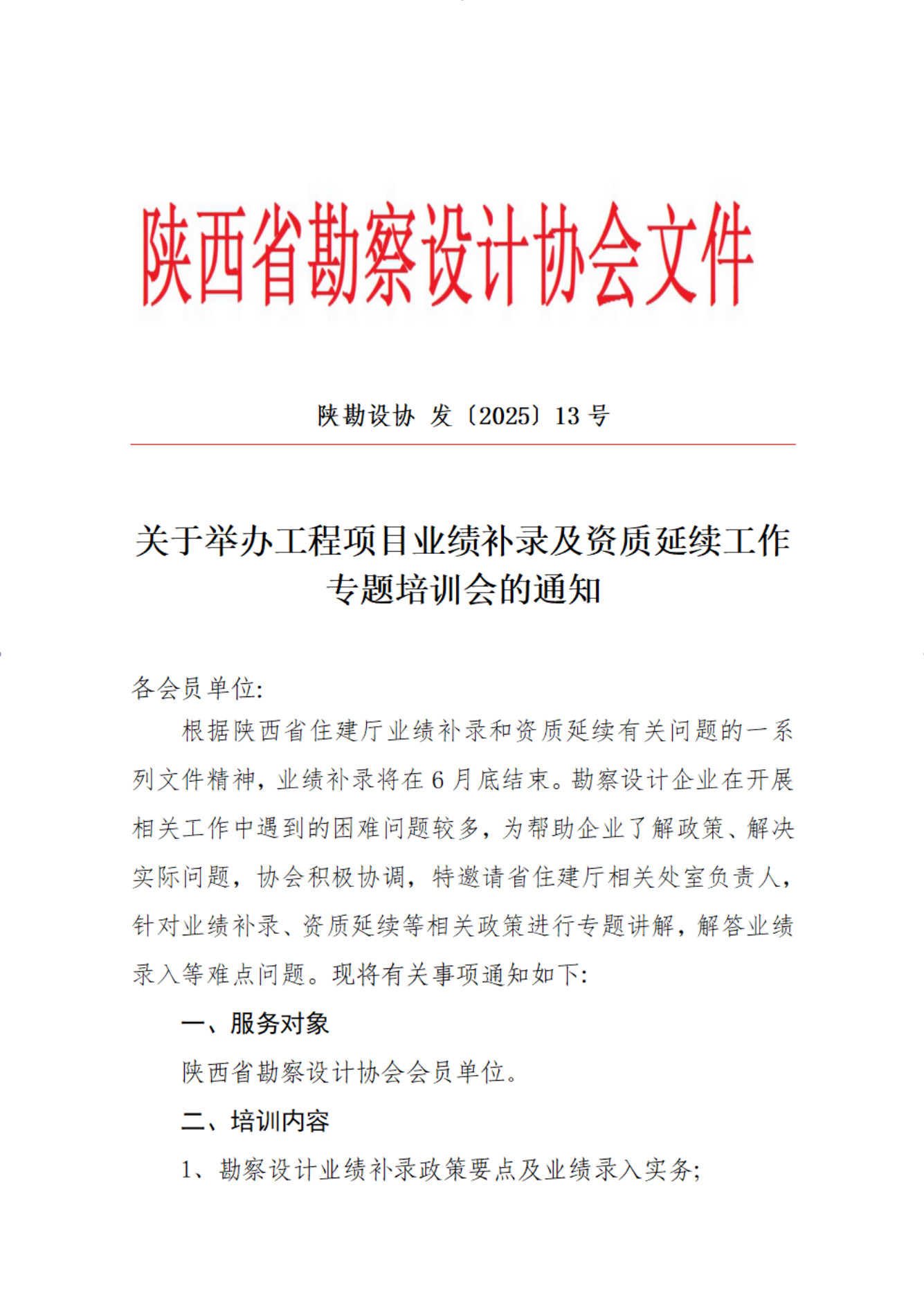 关于举办工程项目业绩补录及资质延续工作专题培训会的通知