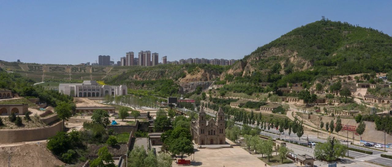 位于园区中轴线的核心位置,在充分尊重核心保护区内的文保建筑(教堂及鲁艺学院旧址1—7号窑洞)的基础上,我们对区内的环境景观进行了整治。同时在保留现状乔木的基础上,对绿化面积进行增补,力求真实地再现鲁艺当年的风貌。