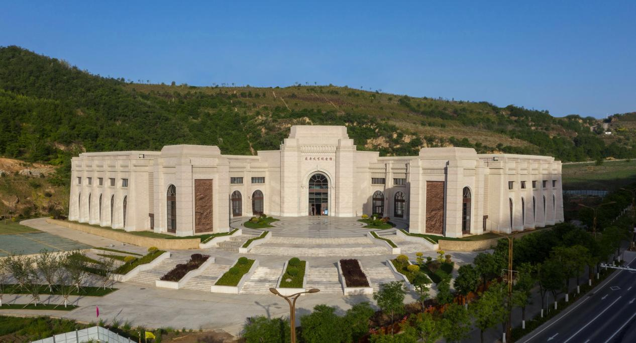该纪念馆建筑采用中轴对称的形式,方形轮廓环抱一个圆形的广场。游客先被引至纪念馆前的圆形广场,之后再进入纪念馆建筑内部,在有限的用地中感受丰富的建筑空间层次。纪念馆的建筑风格借鉴延安时期枣园、杨家岭、边区大礼堂等红色历史建筑风格,同时延续陕北地域窑洞民居文脉,并吸取了核心保护区保护建筑的元素,使红色历史建筑元素和陕北窑洞肌理有机地结合在一起。