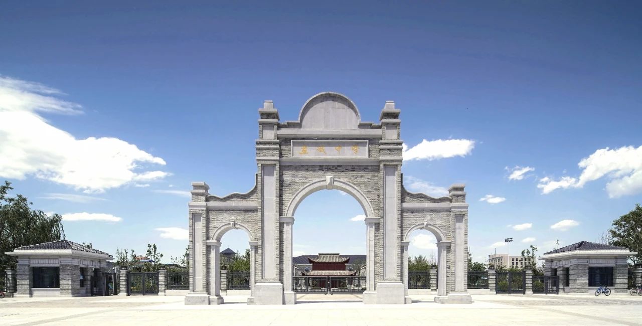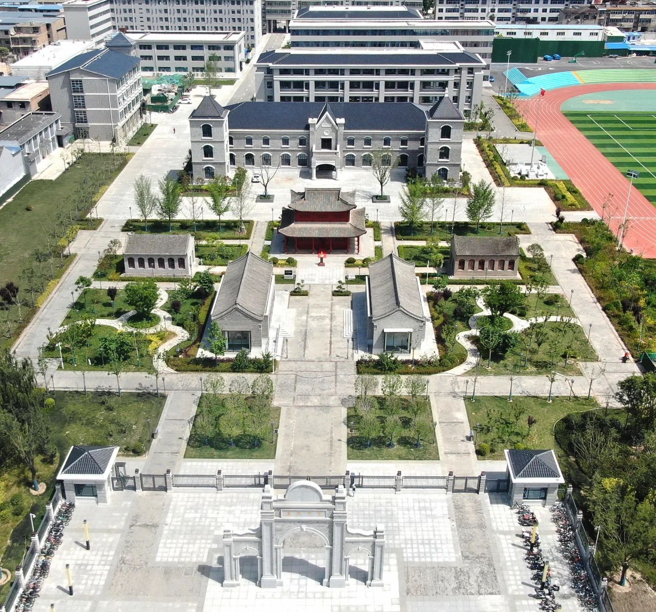 在校园发展历程中,其整体格局随着生源增加和教育模式改变而不断变化。秉承新时代对校园建筑遗产的守护与创新,校园空间序列组织由南向北收放有度,本着尊重历史风貌的原则,还原藏书阁前后两侧由庄重肃穆到豁然开朗的穿行体验,并在最南端为城镇留出广场,将校园大门演绎成为一个具有地标性质的场所,弱化其作为“门”的功能,赋予其校园精神堡垒的意义。