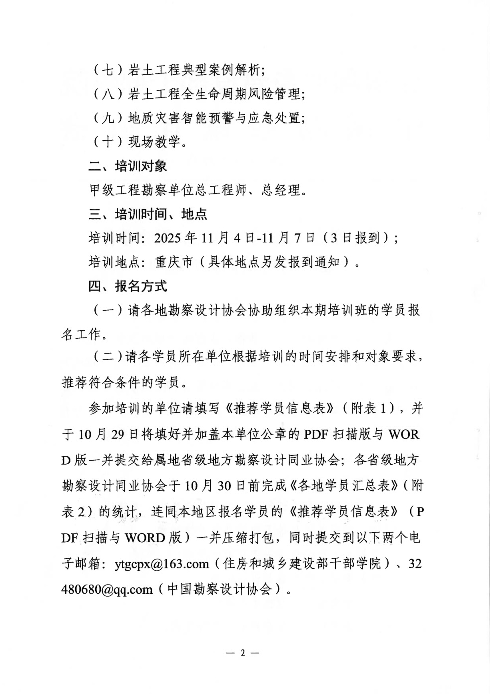关于举办2025年甲级工程勘察单位总工程师培训班的通知