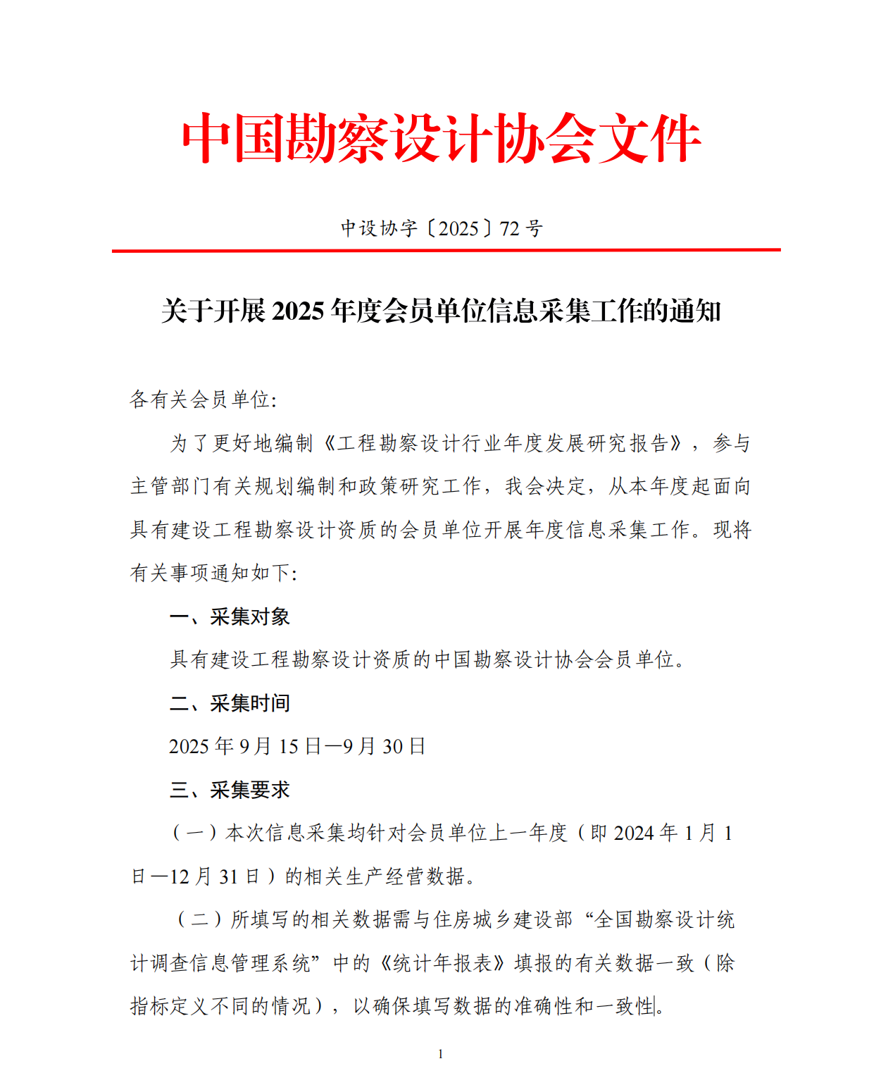关于开展2025年度会员单位信息采集工作的通知 中设协字〔2025〕72号