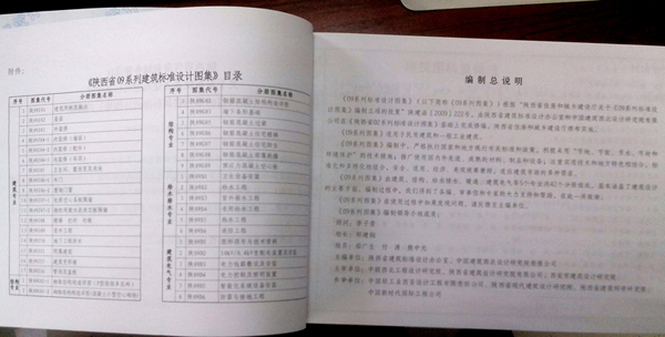 由陕西省建筑标准设计办公室牵头组织,中国建筑西北设计研究院有限公司(简称中建西北院)承担研究编制任务的陕西省地方标准——《陕西省09系列建筑标准设计图集》(简称《09系列图集》),已出版并在全省推广使用。《09系列标准设计图集》由建筑、结构、给水排水、暖通、建筑电气等5个专业共计42个分册组成。其中建筑专业17册、结构专业9册、给排水专业6册、暖通专业4册、建筑电气6册,基本覆盖了建筑设计的主要方面。适用于民用建筑和一般工业建筑。