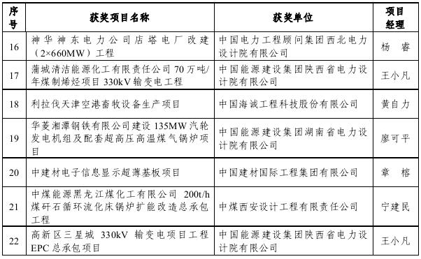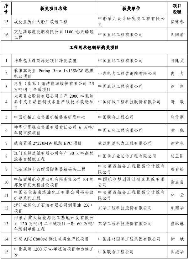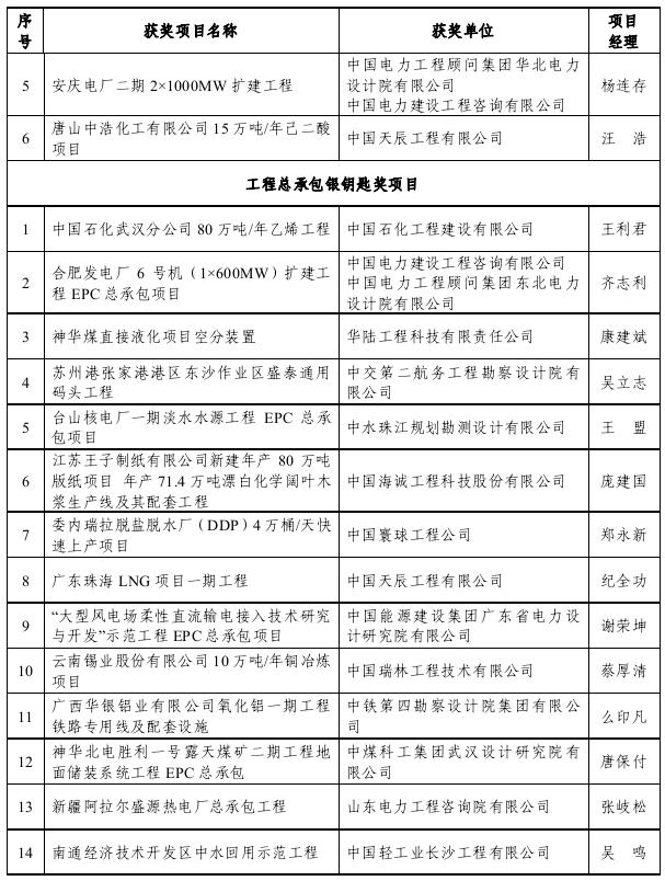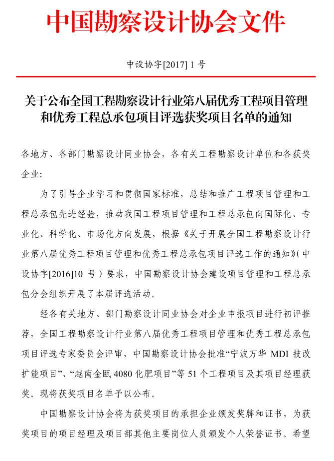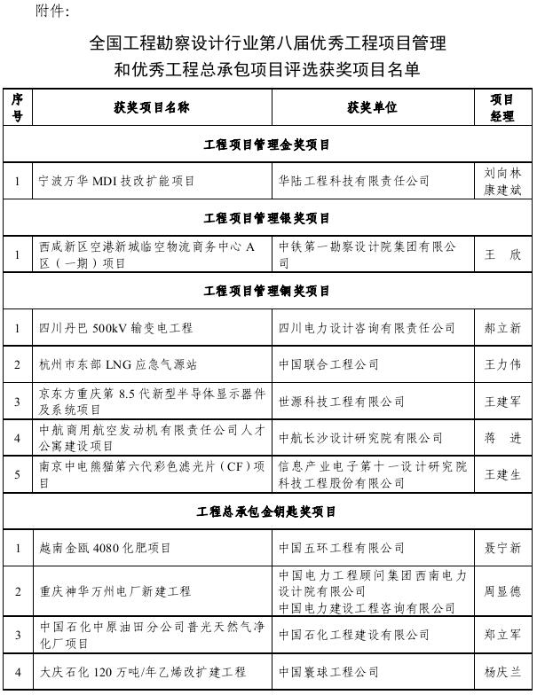 关于公布全国工程勘察设计行业第八届优秀工程项目管理 和优秀工程总承包项目评选获奖项目名单的通知