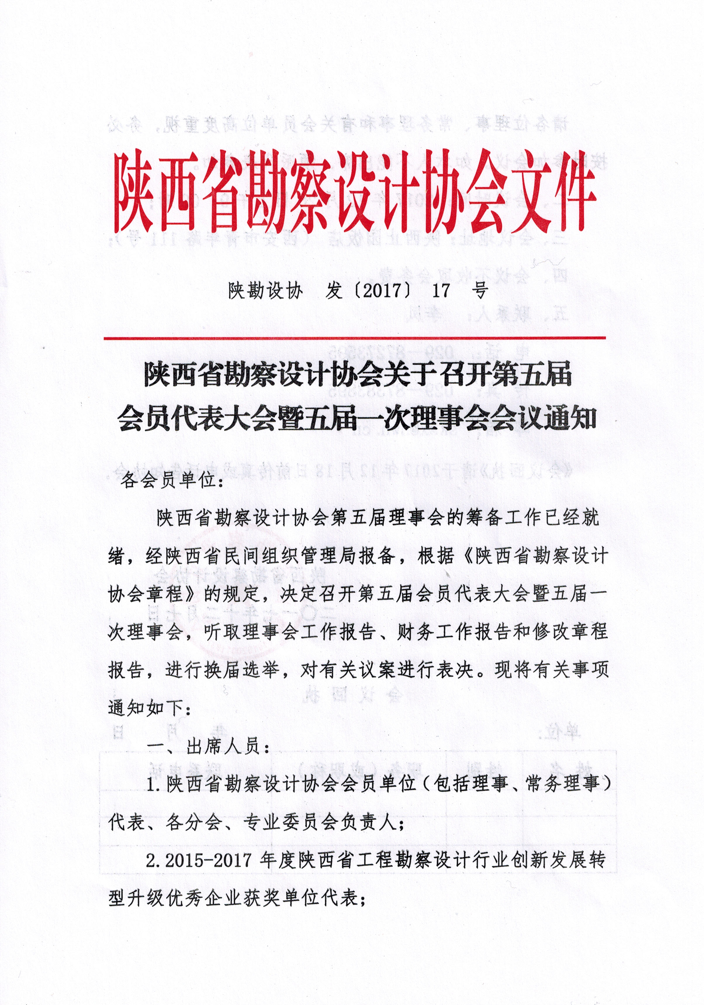 陕西省勘察设计协会关于召开第五届会员代表大会暨五届一次理事会会议通知