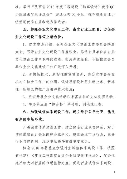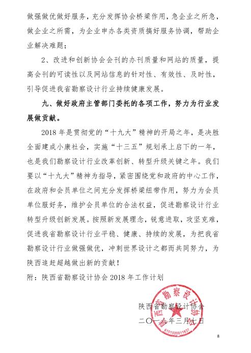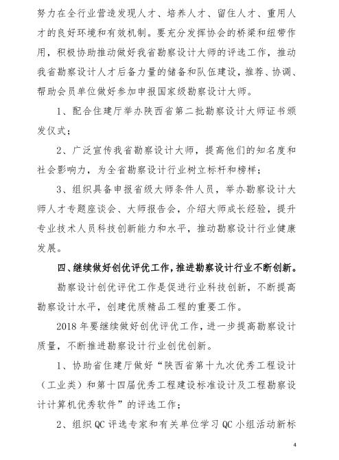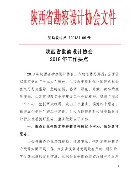 陕西省勘察设计协会2018年工作要点 陕勘设协发[2018]06号