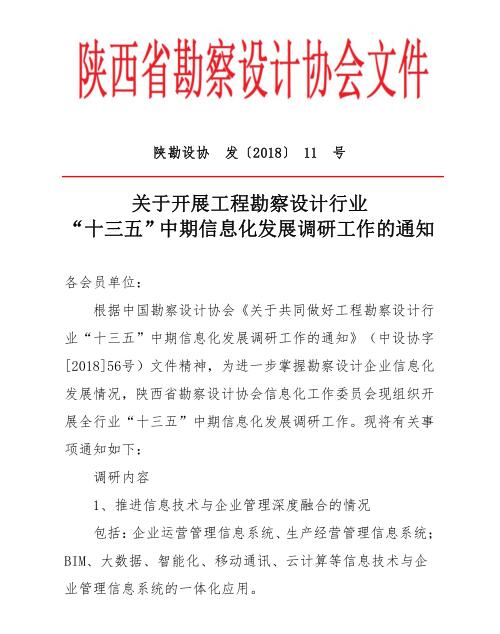 关于开展工程勘察设计行业“ 十三五 ” 中期信息化发展调研工作的通知