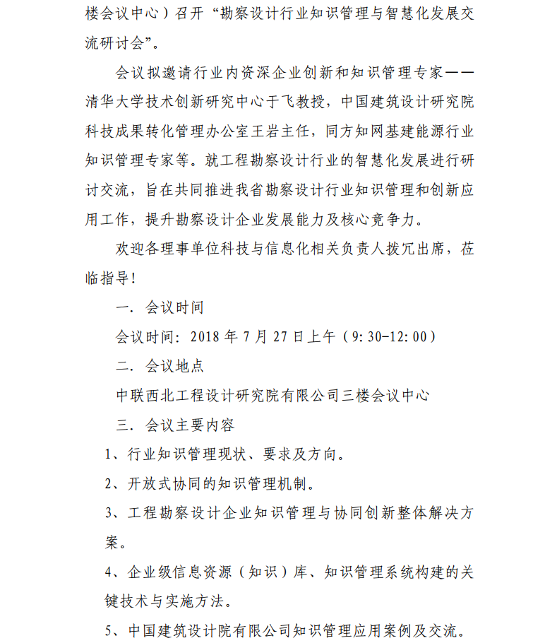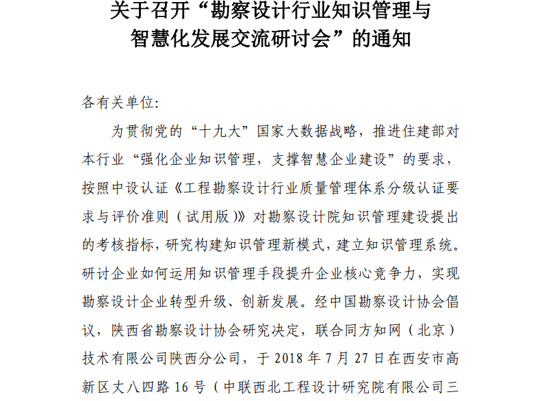 关于召开“勘察设计行业知识管理与智慧化发展交流研讨会”的通知