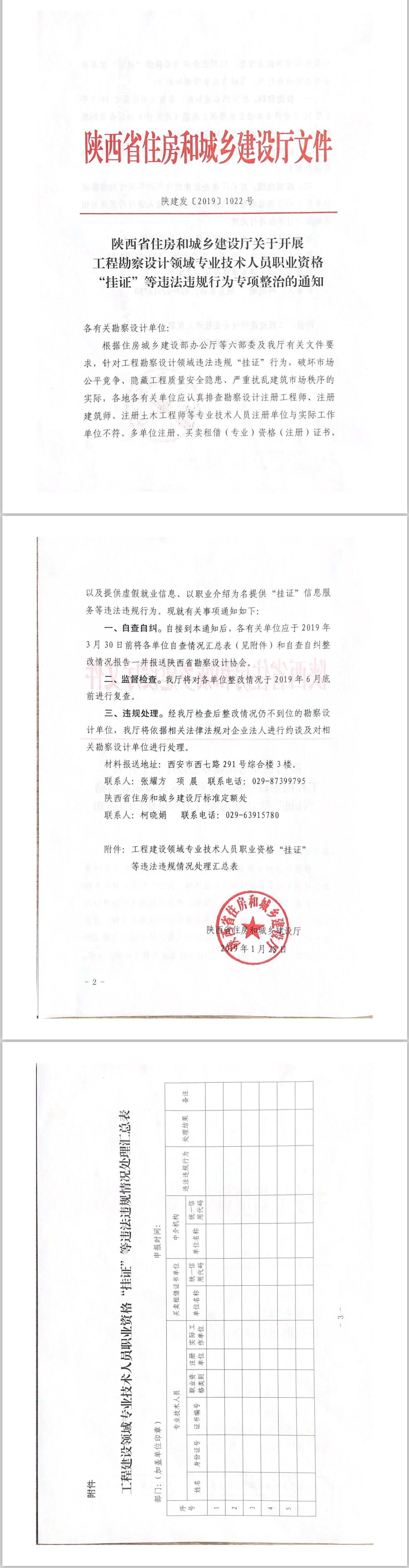 陕西省住房和城乡建设厅关于开展工程勘察设计领域专业技术人员职业资格挂证等违法违规行为专项整治的通知